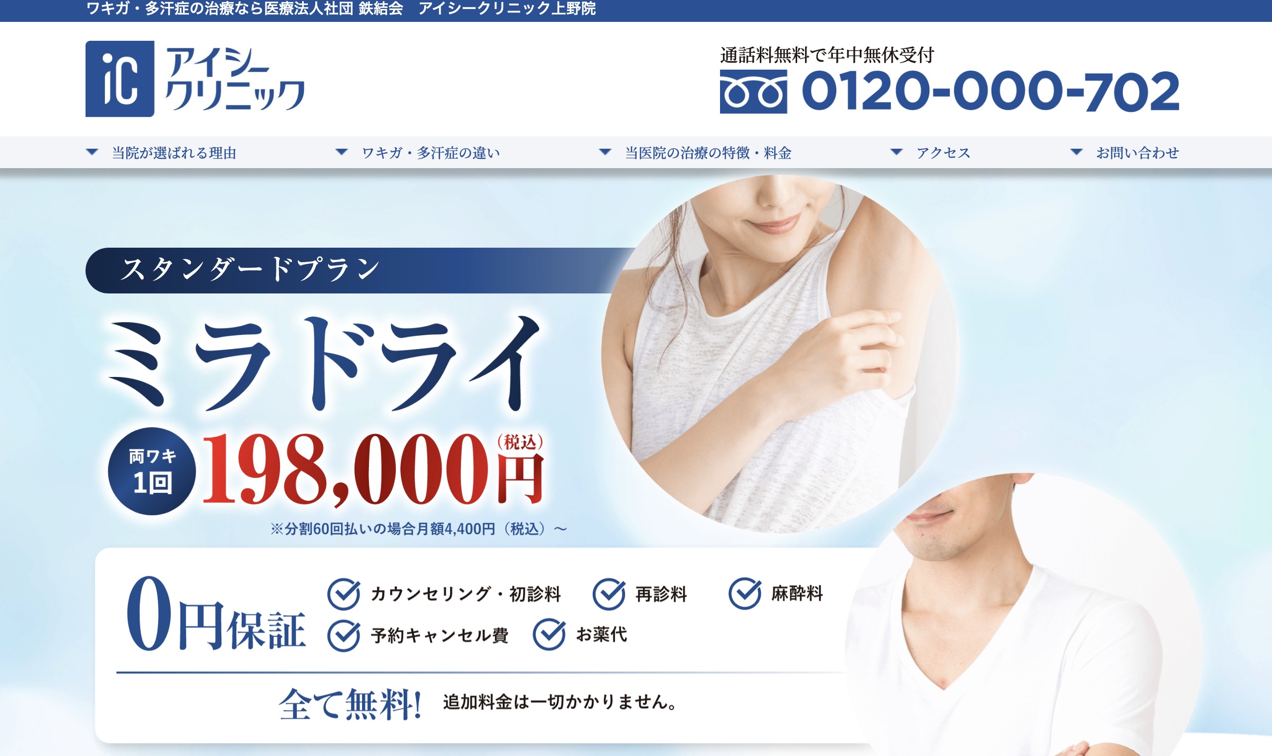 ワキガ治療:ミラドライ198,000円〜(税込)